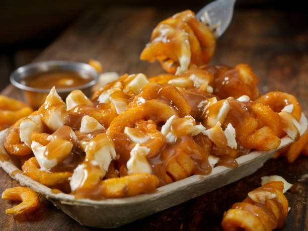 Brie cheese and caramelized onion poutine
