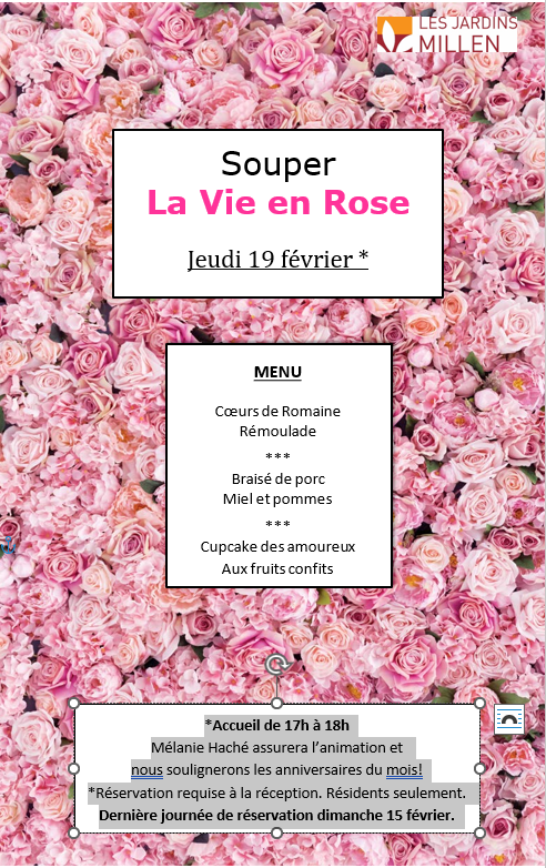 Mélanie Haché assurera l’animation et nous soulignerons les anniversaires du mois!