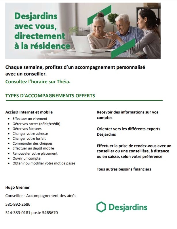 Venez de 09h30 à 14h30 pour rencontrer notre conseillé Desjardins Hugo Grenier. Au bureau Desjardins